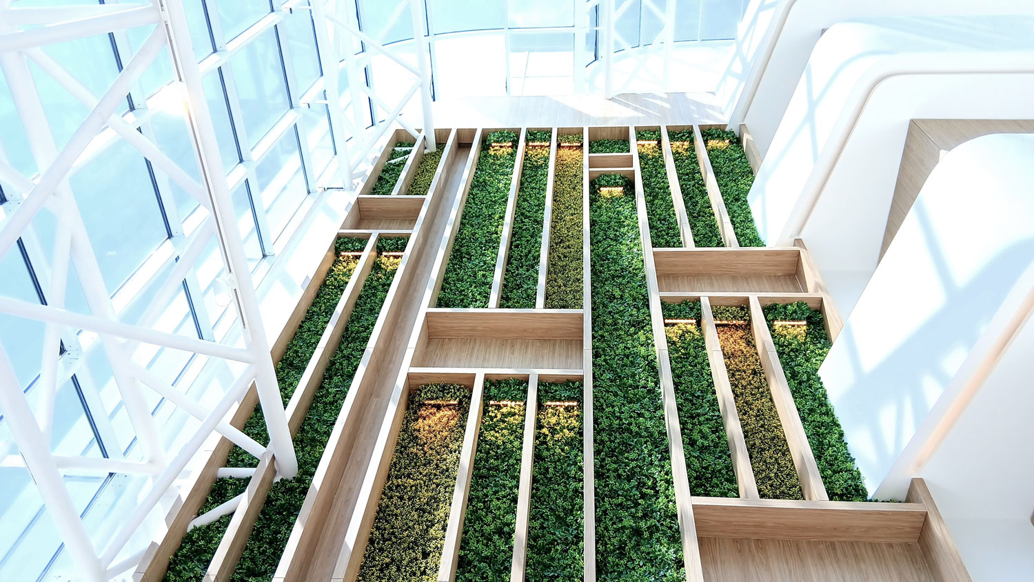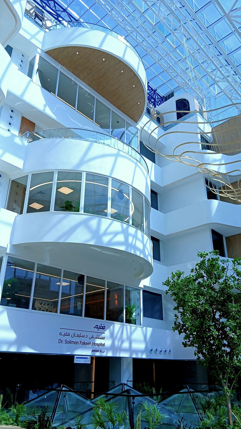 Complete renovation of the Atrium, transforming the former vintage garden and aquarium into a luxurious waiting area and secondary access point to the outpatient clinics, aligned with the hospital’s modern identity.
